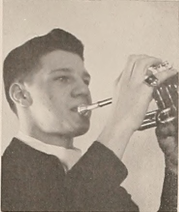 When the Saint marched into the Naval Academy he brought with him his trumpet, swimming trunks, and Nancy. They sent Nancy home. Hailing from Upper Darby, Pennsylvania, Bub came to the Academy via Bullis Prep. A real cut in dragging, the Saint exercised his talents in liberty-hounding or resting up for the weekend. The NA-10 trips to Hood College were Bud's extra-curricular activity, along with singing before breakfast. Conscientious work kept Bud clear of the academic departments, and his good nature and helpfulness should help him in the service. Bud seemed air-bound after graduation, and jets should be no strain to a man with Bud's determination.