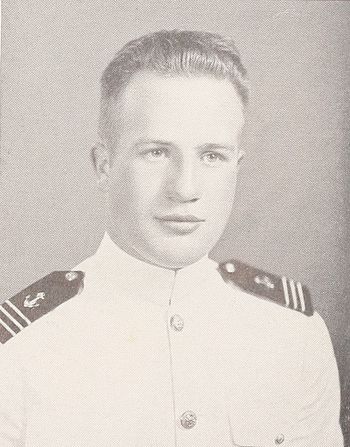 From his beloved New England, Van comes as the youngest man in '42. He loves to argue and his clever observations, biting sarcasm and fluency make him an able opponent for anyone. The time he takes from his extensive writing he spends on football, squash or fencing. Ever since Plebe year he has been dreaming of the subs and if a natural leadership and responsibility count, soon he'll be taking his own craft down to periscope depth.