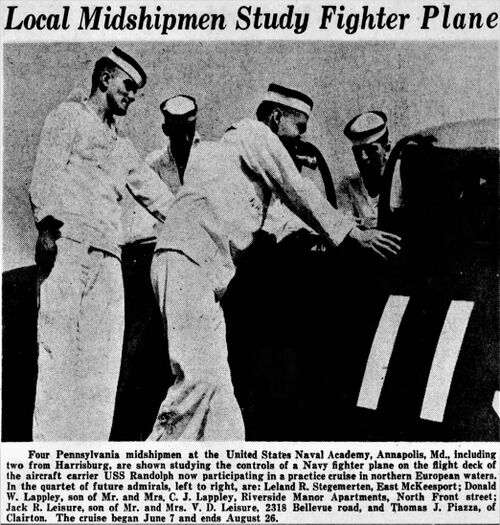 In May 1950, he was best man at the wedding of Ensign Edward Carson Waller, III (’49.)