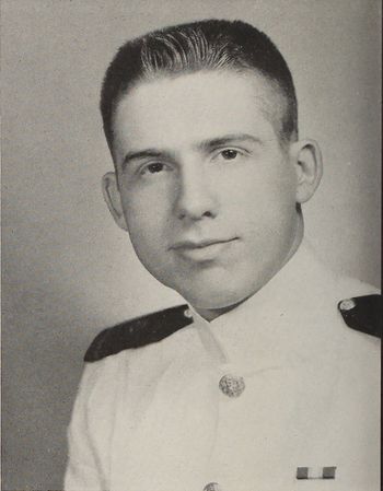 He served aboard the USS Tulare (AKA 112) in Communications (see picture) and edited the cruise book in 1960. The ship covered 25,541 miles on its Far East Cruise, October 13, 1959, to April 28, 1960. Prior to qualifying in submarine duties, he served aboard the USS Tullivee and the USS Scorpion. He was also an executive officer aboard the USS Ethan Allan, where he served with the Gold Crew. From 1972 to 1974, he was commanding officer of the USS James Monroe.