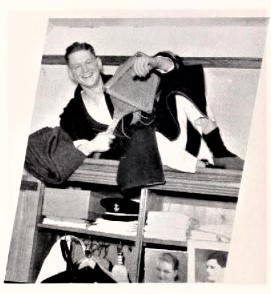 A ship under way with way on, that's Billy. Whether beating against the wind in his battle with academics, or trying to charm young ladies at the hops, he ships no water, for it's all smooth sailing for Bill. The Southern belle and the beauties of the Gulf Coast are his two favorite topics of discussion. If a man needs cheering up, a watch stood for him, or help of any kind, Bill's the friend in need. A serious minded fellow, he strives always for perfection in self and in job. He's the type of man we'd like to have beside us when the going gets tough. Bill is the kind the Navy always needs.