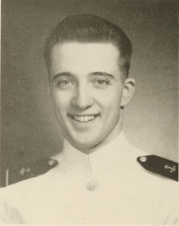 Don, better known as Otto, entered the Academy from his beloved hometown of Brooklyn, where many a sandlot was lighted by his brilliant playing. As a Brooklynite, Don was always ready and willing to tell the world about how good the Dodgers were, and how they were a lead pipe cinch to take the series next year. At Navy Tech, Don's athletic ability was a great asset to his company's teams, especially in fieldball and softball. His favorite habitat was the rack, and never let it be said that he let his studies stand in the way of a good game of pinochle. Don was one of those mids at Navy who really enjoyed and appreciated classical music or a good hook.
