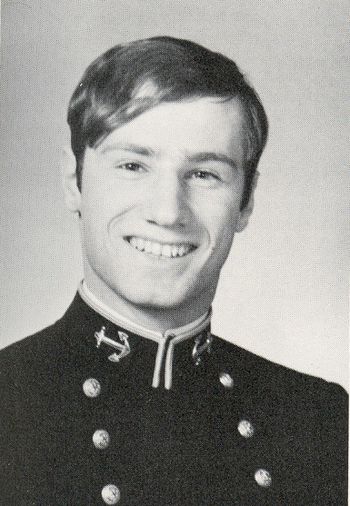 Gerry followed his nose from Sandwich, Mass. to USNA full of hope and ambition. He also thought he would try to get an education on the side. After his first swimming lesson he became known as “The Fish,” a name that became famous brigade-wide. Always ready for a party, Fish never let the place keep him from having a good time, and when the going got tough he always had the solution – a cold beer and a shot of Turkey!!! Sometimes though, the going would get too tough and he would have to sleep in the shower after too many solutions. These minor setbacks never stopped him for long. Fish became a jack-of-all-trades holding such titles as bartender, lead janitor, underground maintenance man, MacDonough Hall nighwatchman, and class undertaker. One of the most early going personalities in Bancroft history, he was considered a good friend by all he met. As a group, no one will forget the antics of the one-and-only “Fish” and as my closest friend, I will him all the luck in the world.