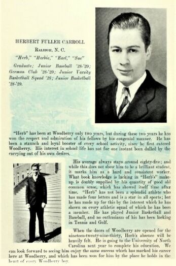 Dr. Norwood Carroll, a dentist, was his uncle. He and his wife, Dr. Delia Dixon Carroll, lived in Raleigh. Herbert lived with them for a time and attended elementary schools in Raleigh and attended Woodberry Forest School in Orange, Virginia.