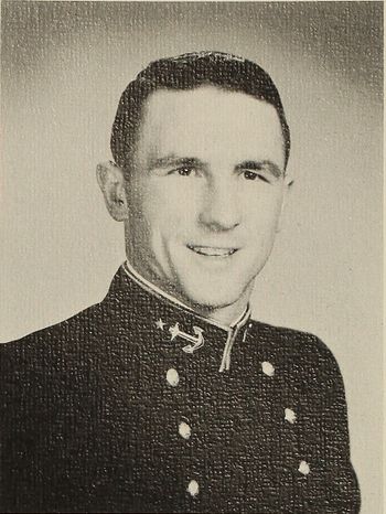 Jim came to the Academy from Cowles, Nebraska. After spending a year at the University of Nebraska as an NROTC student, he decided to go all out "Navy Blue" and so spent his next four years at Annapolis. Academically, Jim remained near the top of the class and was referred to as "Univac" by his classmates. Jim also found the time to participate in Brigade Boxing, 150 pound football and numerous company sports. His activities included the Naval Academy Christian Association and the Foreign Relations Club. For the immediate future, Jim expects to be flying high with his Navy wings. His ultimate goal is set on the space program, but no matter what field he enters, the Navy will not gain a harder working Naval officer.