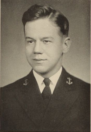 AFTER early successes in the Boy Scout movement, this precocious youth mustered up all the nautical sentiment in Cedar Rapids, and proceeded to prolong his activities along these lines by entering the Naval School. Yes, indeed, our Jim started out with no less than thirty-one merit badges. Thus did he place his classmate under a severe handicap way back in Plebe Summer. Since then, his accomplishments have proceeded scholastically and athletically. A water polo player of no mean ability, he managed to capture himself the coveted block "N." Concerning his additional activities, it need only be said that the Logs of the past four years have been well seasoned with his work. And ask Isham Jones if James can lead a band!