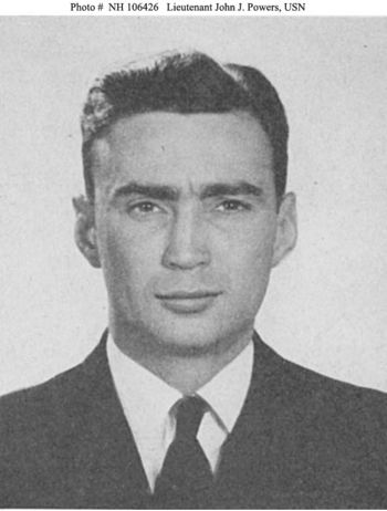 For distinguished and conspicuous gallantry and intrepidity at the risk of his life above and beyond the call of duty, while pilot of an airplane of Bombing Squadron 5, Lt. Powers participated, with his squadron, in 5 engagements with Japanese forces in the Coral Sea area and adjacent waters during the period 4 to 8 May 1942. Three attacks were made on enemy objectives at or near Tulagi on 4 May. In these attacks he scored a direct hit which instantly demolished a large enemy gunboat or destroyer and is credited with 2 close misses, 1 of which severely damaged a large aircraft tender, the other damaging a 20,000-ton transport. He fearlessly strafed a gunboat, firing all his ammunition into it amid intense antiaircraft fire. This gunboat was then observed to be leaving a heavy oil slick in its wake and later was seen beached on a nearby island. On 7 May, an attack was launched against an enemy airplane carrier and other units of the enemy's invasion force. He fearlessly led his attack section of 3 Douglas Dauntless dive bombers, to attack the carrier. On this occasion he dived in the face of heavy antiaircraft fire, to an altitude well below the safety altitude, at the risk of his life and almost certain damage to his own plane, in order that he might positively obtain a hit in a vital part of the ship, which would insure her complete destruction. This bomb hit was noted by many pilots and observers to cause a tremendous explosion engulfing the ship in a mass of flame, smoke, and debris. The ship sank soon after. That evening, in his capacity as Squadron Gunnery Officer, Lt. Powers gave a lecture to the squadron on point-of-aim and diving technique. During this discourse he advocated low release point in order to insure greater accuracy; yet he stressed the danger not only from enemy fire and the resultant low pull-out, but from own bomb blast and bomb fragments. Thus his low-dive bombing attacks were deliberate and premeditated, since he well knew and realized the dangers of such tactics, but went far beyond the call of duty in order to further the cause which he knew to be right. The next morning, 8 May, as the pilots of the attack group left the ready room to man planes, his indomitable spirit and leadership were well expressed in his own words, "Remember the folks back home are counting on us. 1 am going to get a hit if 1 have to lay it on their flight deck. He led his section of dive bombers down to the target from an altitude of 18,000 feet, through a wall of bursting antiaircraft shells and into the face of enemy fighter planes. Again, completely disregarding the safety altitude and without fear or concern for his safety, Lt. Powers courageously pressed home his attack, almost to the very deck of an enemy carrier and did not release his bomb until he was sure of a direct hit. He was last seen attempting recovery from his dive at the extremely low altitude of 200 feet, and amid a terrific barrage of shell and bomb fragments, smoke, flame and debris from the stricken vessel.