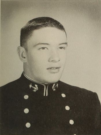 Mike left New York City for a year at Columbian Prep before coming to Tecumseh Tech. Having lettered in football in high school, Plebe year found him excelling in football and wrestling. The football team benefited greatly from his blocking and tackling and it was impossible to find a more aggressive, hard-working guy, both off and on the field. Going by various nicknames, Mike could always be found wherever a study hour party was in progress. A career in Navy Air awaits Mike after graduation. He certainly will be a welcome addition to the ranks of the "plane drivers." We all wish "Locker," the very best of luck and happy landings.